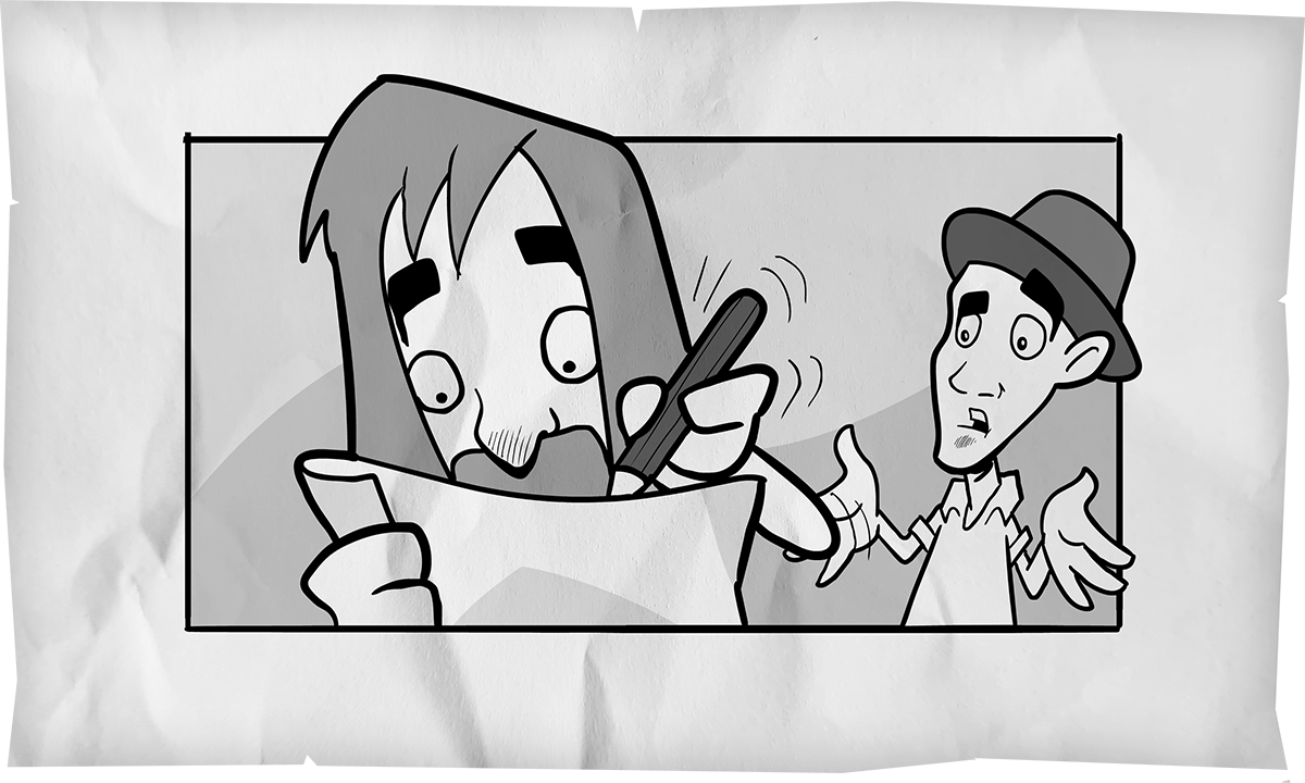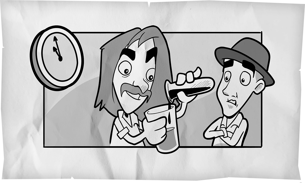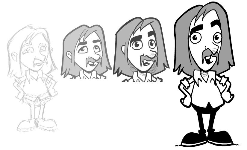 Ray was keen to have the strip feel like a combination of the Viz/Beano aesthetic and the forerunner to Viz, the Furry Freak Brothers. Several iterations of cartoon Alan were created before we settled on something that felt like Alan Hull but drawn in the correct style.
