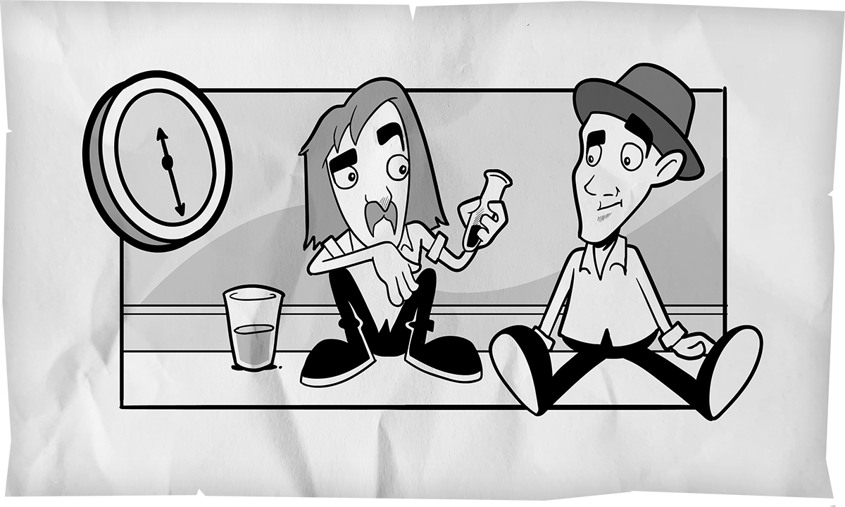 The final strip was created to accompany an anecdote of an old friend of Alan's when he worked as a psychiatric nurse - involving 'revelations' obtained from substance experimentation.