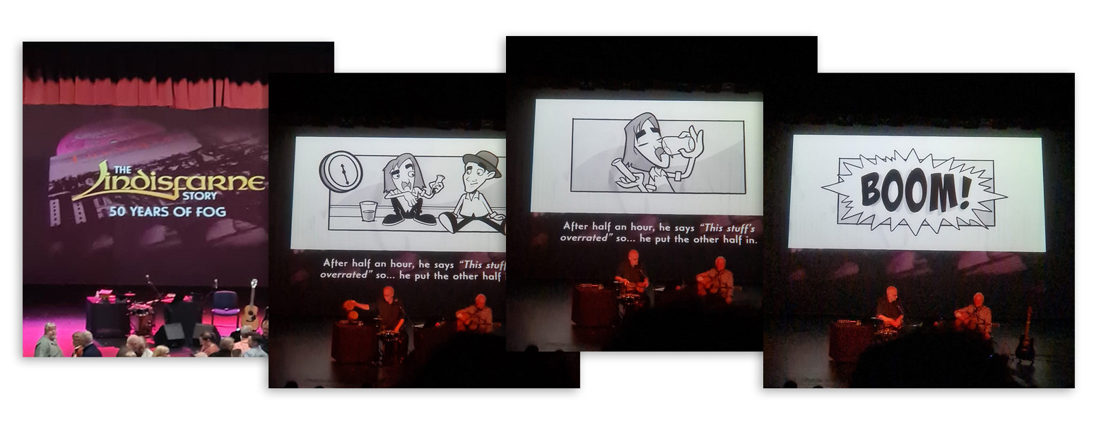 Due to the wealth of material created for the documentary and time constraints, the sequence was unfortunately cut from the final broadcast. However the sequence was subsequently used in the Lindisfarne Story tour '50 years of Fog' - celebrating 50 years since the launch of Fog on the Tyne.