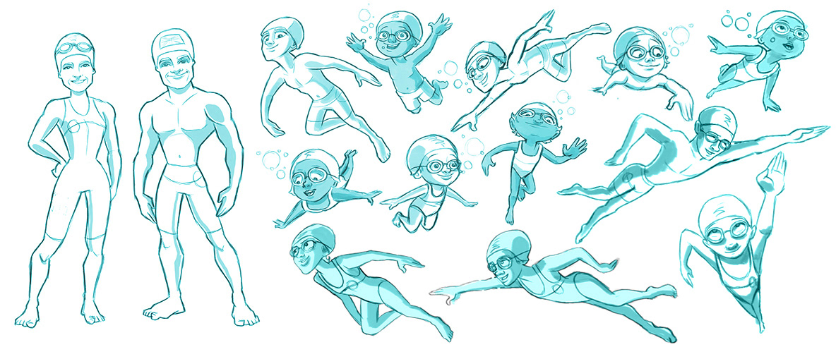 Other requirements were illustrations of the lead coaches, Jonathon (a GB international swimmer), his sister Stacy, and swimming children to be used for socials and wall art.